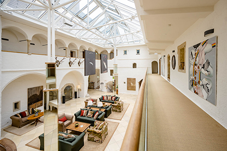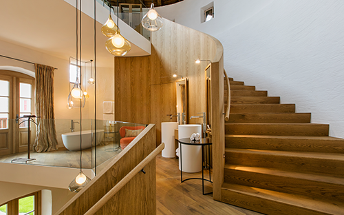 Es ist ein besonders stilvolles Haus – das Steirerschlössl, ein Jugendstiljuwel, das mit schlichter Eleganz, höchstem Komfort und herzlicher steirischer Gastlichkeit zum Ankommen, Genießen und zum Bleiben einlädt. Schon im Eingangsbereich des Steirerschlössl spürt man diese zeitlose Eleganz des Hauses, die sich durch alle Räume bis in die Suiten fortsetzt. Geschwungene Linien und flächenhafte florale Ornamente als Elemente des Jugendstils, dunkles Holz und hochwertiger Marmor in der spannenden Kombination mit ausgesuchten Design-Elementen laden zum Wohlfühlen ein. Jede Suite ist einzigartig und verfügt über sämtliche Annehmlichkeiten von großzügigen Bädern über modernste Technik bis zur großzügigen Auswahl an Lektüre – sowohl jene im Haupthaus, als auch die im neu errichteten Gästehaus, das in wenigen Schritten durch den Garten erreichbar ist. Die vielfach ausgezeichnete Küche des Hauses, die traditionelle Regionalität mit internationalen Akzenten verbindet und weit über die Grenzen des Murtals bekannt ist, genießt der Gast im geschmackvollen Ambiente des Restaurants zu ausgesuchten österreichischen und internationalen Weinen, die man aus der umfassenden Selektion des beeindruckenden Weinkellers selbst wählt oder sich auf die Empfehlungen des Sommeliers verlässt.