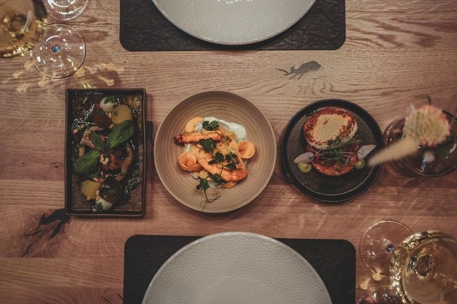 Ein kulinarisches Highlight erwartet die Gäste in 40 m Höhe: das Abendmenü mit zehn verschiedenen durchdachten Gerichten auf Food-Sharing-Plates für zwei.