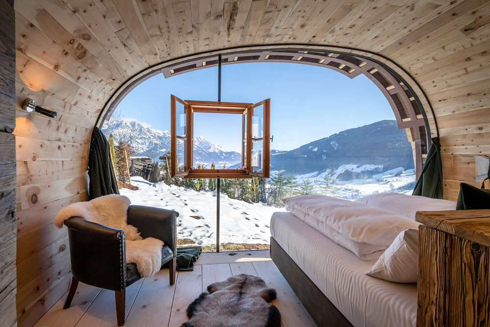 15 alpine Chalets und drei individuellen Villen stehen den Gästen zur Verfügung. Alle mit offenem Wohnbad für SPA-Treatments, Hot Tub und eigener Sauna, teils um private Außenpools ergänzt. Der Wellnessbereich „PRIESTEREGG BAD“ bietet auf 3.000 qm besondere Entspannungsinseln, wie die Original Lappland Rauchsauna oder das 25 m lange, schier frei überm Hang schwebende „Himmelbecken“. Indoor-Pool, Ruheräume, Zirbensauna und ein SPA-Menü aus reiner Naturkosmetik runden das Angebot ab. Zudem finden regelmäßig Yoga-Einheiten statt. Äußerst beeindruckend hierfür: die Holzplattformen im Wald.