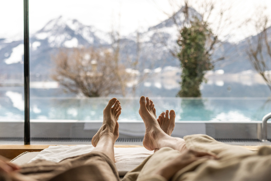 Sich im Infinity-Pool treiben lassen, in der Sauna den Stoffwechsel anregen, beim Yoga die eigene Mitte finden und dabei die malerische Aussicht auf den zu Füßen liegenden Wolfgangsee und die Ruhe genießen. Das alles erwartet Gäste bei einer Wellnessauszeit in der Seevilla Wolfgangsee umgeben vom Alpenpanorama des Salzkammerguts.