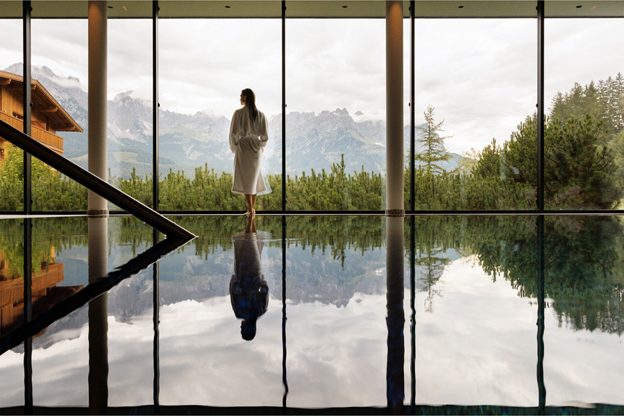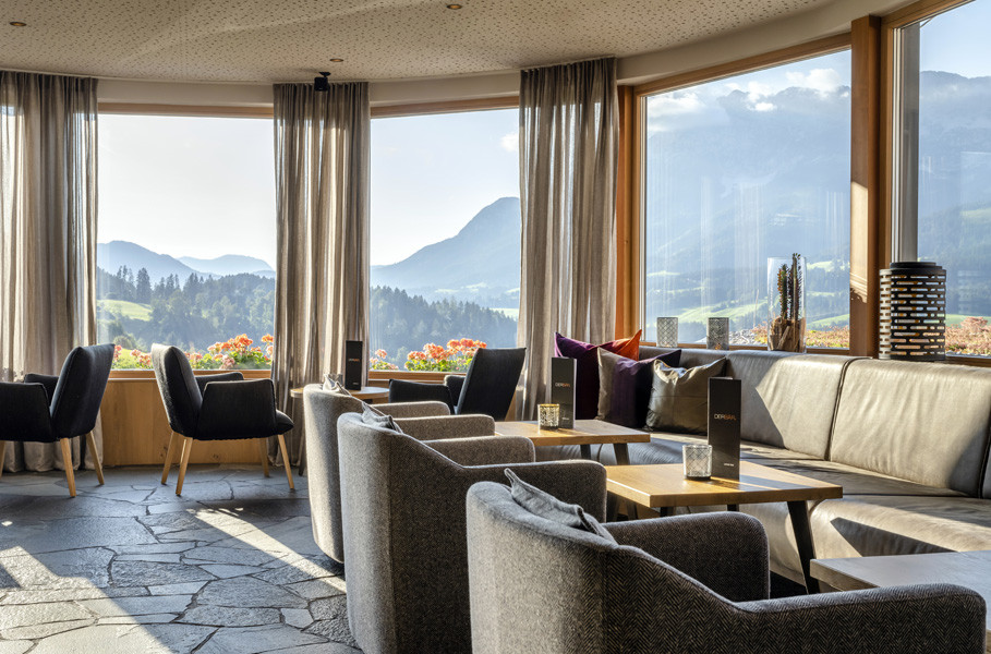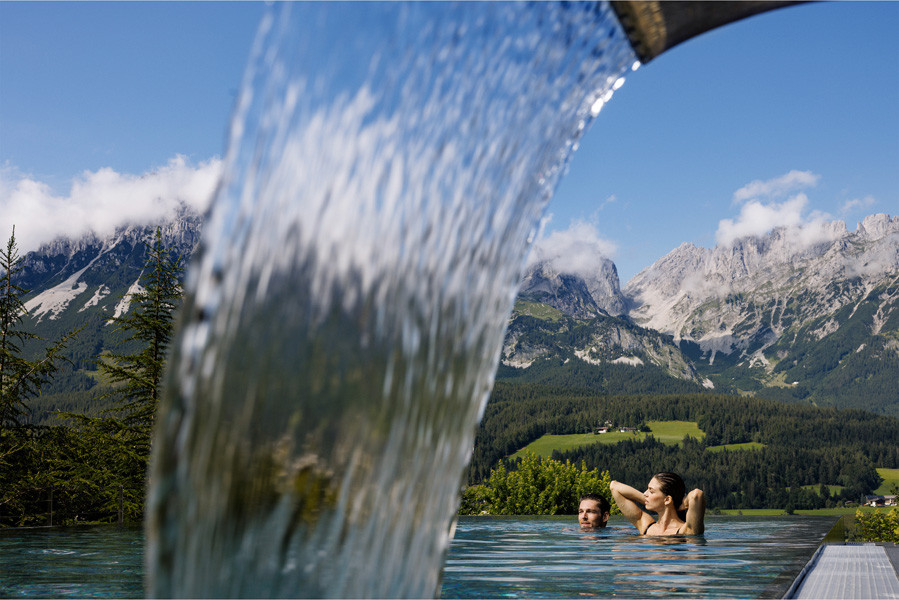 In dem Genuss- und Lifestyle-Hotel in Ellmau genießen Urlauber die individuell perfekte Auszeit vom Alltag und erleben das besondere Flair der Tiroler Alpen. Ursula und Andreas Windisch verwirklichten ihre Vision und geben dem Haus eine neue Atmosphäre. Ein Highlight ist ganz sicher der 20 Meter lange, ganzjährig beheizte Infinity Pool mit Bergblick. Das Badehaus mit Hallenbad, Panorama-Ruheraum mit Kamin und Saunalandschaft lädt zum Entspannen vor einer Traumkulisse ein. In den neuen, individuell gestalteten Zimmern und Suiten mit Kaiserblick trifft Komfort auf Understatement. Eleganz auf lässige Sportlichkeit. Dabei sorgen die hellen Eichenholzböden für ein entspanntes Gefühl der Leichtigkeit. Edle Stoffe geben dem Raum eine elegante Note. Tiroler Loden schenkt dem Raum ein charmantes alpines Flair. Die Cooking Station lässt jeden Besuch zum Erlebnis werden. Passend dazu werden kulinarische Köstlichkeiten aus der mit einer Gault-Millau-Haube und drei Falstaff-Gabeln ausgezeichneten Küche serviert. Küchenchef Markus Feyersinger und sein Team verwöhnt Sie jeden Tag aufs neue mit regionalen und internationalen Köstlichkeiten. Alpiner Charme, modernes Interieur und authentische Gastfreundschaft begleiten hier jedes Menü genauso selbstverständlich, wie die von Sommelier Robert Lechner sorgfältig ausgewählten Tropfen aus Österreich und der ganzen Welt.