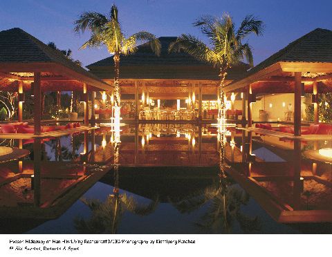 Etwas außerhalb des ruhigen Badeortes schließt direkt an das Gelände des äußerst erfolgreichen Evason Hua Hin Resort & Spas (eröffnet im Jahr 2002) auf einem 41.000m² großen Strandabschnitt das neu entstandene Six Senses Hideaway.