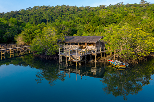 Die kleinsten der 36 großen Villen verfügen über ein Schlafzimmer und eine In- und Outdoorfläche von 403 m², für Großfamilien geht es dann aufwärts bis zu sechs Schlafzimmern und einer Fläche von 2.928 m². Sie haben richtig gelesen – im Soneva Kiri haben Luxus und Raum eine mehr als großzügige Dimension. Gemütlicher wird es in den fünf Restaurants und Bars, besonders lecker im einzigartigen und gekühltem Schokolade-Raum. Im Freiluftkino mit riesiger Leinwand und Barbetrieb lässt es den Tag gemütlich ausklingen. Wobei ganz stimmt das nicht, Benz’s Restaurant – entweder mit dem Jeep oder per Boot zu erreichen – ist ein absolutes Muss, Thaiküche vom Allerfeinsten, doch leger – eben im Soneva Stil. Oder ein Essen im Baumhaus. Ein Erlebnis.