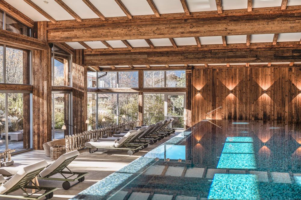Menschen zusammenbringen, die Verbundenheit zum Chiemgau erlebbar machen und ihre Gäste mit nachhaltigem Luxus begeistern – das ist die Leidenschaft und der Antrieb der Inhaber-Familie Müller. In den letzten Jahren haben sie das Resort mit viel Liebe zum Detail weiterentwickelt. Natur stoffe und warme Farbtöne, Holz, Leder, offene Kamine und Hirschgeweihe dominieren die Inneneinrichtung des Hotels, ob in den 179 Zimmern und Suiten sowie in den Restaurants, Bars und Lounges. Beeindruckend ist der 2.000 m² große SPA-Bereich mit Kräutersauna, finnischer Zirben sauna, Steinsauna, Soledampfbad und Dampf bad sowie Ruheraum. Hinzu kommen Massage- und BeautyAngebote. Sportlich aktive Gäste können im vollausgestatteten Fitnessbereich trainieren oder im 17 x 5 Meter langen Indoorpool ihre Bahnen ziehen.