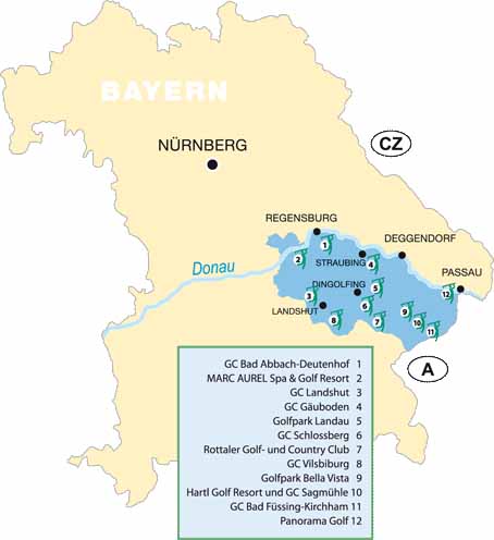Mit über 40 erstklassigen Golfplätzen in der Region und den angrenzenden Gebieten sowie Europas größtem Golfresort in Bad Griesbach mit eigener Golfakademie und speziellem, patentierten Lehrsystem ist die Region ideales Ziel für Golfspieler – nicht zuletzt auch dank der einzigartigen Kombination von Golfspiel und Thermen-Landschaft. Auch rund um die Welterbestadt Regensburg findet man einen sensationellen Klassiker: zwar nicht aus dem Mittelalter, sondern 1969 eröffnet, auf den Gründen der Fürsten zu Thurn und Taxis schlängeln sich rund um das stilvolle Jagdschloss, das mit seinen holzgetäfelten Clubräumen schon das edle Ambiente versprüht,  beeindruckende nicht allzu lange (5.734m bei Par 72) 18 Spielbahnen des Golf- und Landclub Regensburg, der zweifellos zu einem der schönsten Golfkurse in Deutschland zählt. Ebenfalls nur 20 Minuten vom Zentrum Regensburg wartet die 27 Lochanlage des GC Gut Minoritenhof. Der 18 Loch Meisterschaftsplatz führt in der zweiten Hälfte seine Spielbahnen entlang der Donau: Idylle und Natur pur. Und wer glaubt  die seien durch die Regenfälle ständig überschwemmt, der irrt. Da die Donau unweit entspringt ist sie noch ziemlich klein, seit Bestehen des Clubs 1998 gab es keinerlei Überflutungen.