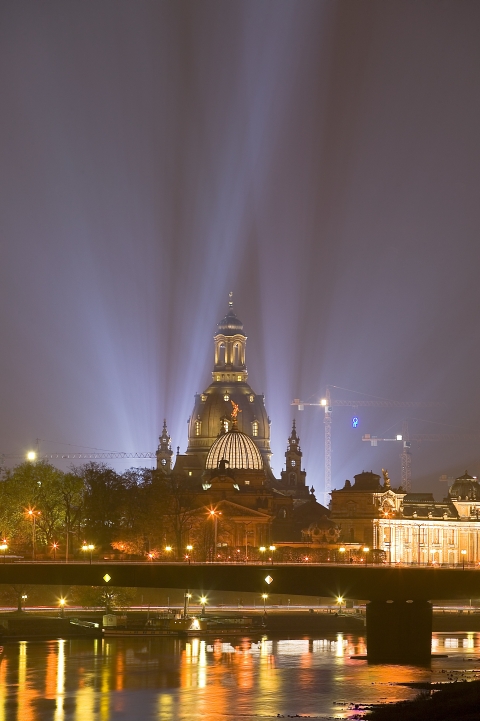 Die Stadt wird auf 15km² eingeäschert. Der Dresdner Neumarkt – ein Ensemble aus Adelspalais, Bürgerhäusern und Hotels – ist ein Trümmerhaufen. Die Semper Oper oder das Residenzschloss sowie sämtliche spätbarocken, wie auch der monumentale Höhepunkt des protestantischen Kirchenbaus, die Frauenkirche total zerstört. Jahrzehntelang standen diese Ruinen als ein drohendes Mahnmal, als man in den Achtziger Jahren in mühevoller Kleinarbeit mit deren Rekonstruktion begann. Teilweise aus den Originalsteinen entstanden, konnte der imposante historische Platz (Neumarkt) an der Frauenkirche in Anlehnung an seine einstige prachtvolle Barockgestaltung aus dem 18. Jahrhundert mit den zahlreichen Gassen und Gebäudefassaden wieder hergestellt werden.