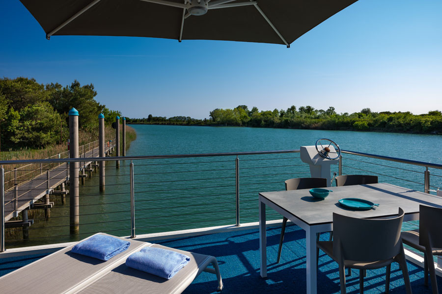 Das Leben am Wasser ist bunt: Schwimmende Feriendomizile in fröhlichem Blau, Türkis oder Pink schaukeln im gelben Sonnenlicht. Die 89 zweistöckigen Hausboote des Marina Azzurra Resort in Lignano bieten eine einzigartige Auszeit für Erholungssuchende. Ausgestattet mit zwei Schlafzimmern, einer voll ausgestatteten Küche, einem modernen Bad und einem großzügigen Sonnendeck, lassen diese Unterkünfte keine Wünsche offen. Ob fest verankert im Flussbett oder zwischen den idyllischen Bäumen an Land – hier genießt man das Leben am Wasser, ganz ohne Bootsführerschein.