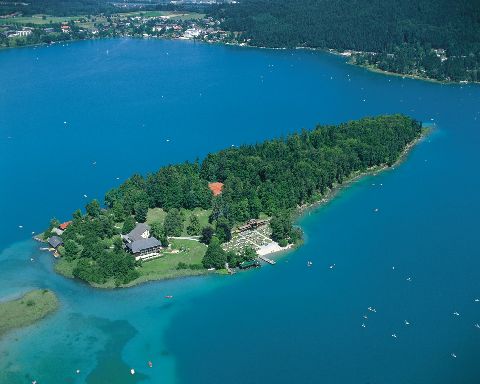 Das Inselhotel Faakersee**** besticht durch seine einzigartige Lage. Das einzige Inselhotel Österreichs liegt auf einer idyllischen Insel mitten in Österreichs südlichstem und wärmstem See, dem Faakersee in Kärnten. Das außergewöhnliche Hotel erreicht man nur per hoteleigener Fähre – oder schwimmend! Fernab von Trubel und Lärm finden erholungsbedürftige Familien, Paare und Singles auf der Insel vor allem eines: Ruhe. Auf der Liegewiese des hoteleigenen Badestrandes kann man sich ideal entspannen und das einzigartige Bergpanorama genießen. Das vom Kärntner Architekten Franz Baumgartner 1929 errichtete Badehaus hat eine Sauna mit direktem Seezugang, die jederzeit benutzt werden kann. Auch ein Masseur und eine Kosmetikerin bieten in dem denkmalgeschützten Baujuwel ihre Dienste an. Das Parken am hoteleigenen Parkplatz am „Festland“ ist übrigens gratis.