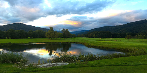 DER PLATZ: Der Golfclub, seit Jahren ein Juwel unter den steirischen Golfplätzen, bietet Überraschungen für anspruchsvolle Golfer, Gourmets und Genießer. Der in den 90er Jahren erbaute 18 Loch Golfplatz erlebte ein Re-Design, durchgeführt vom irischen Architekten Jeff Howes. Sowohl Singlehandicapper, wie auch Anfänger, finden 18 Loch hindurch Abenteuer und Überraschung. Die Anlage verfügt zusätzlich über viele idyllische Teiche, gepflegte Blumenwiesen und versteckte Bäche. Die tiefgrünen Fairways, umgeben von den Hügeln des Aichfelds, lassen Stress und Hektik des Alltags vergessen.