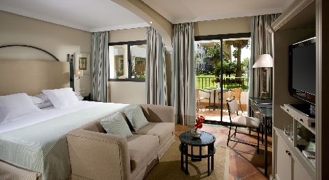 Die wunderschöne Architektur des Hauses, bei der sich Elemente eines alten Nazarener-Palastes mit denen der typisch andalusischen Hacienda mischen, vereint das Beste, was der Süden zu bieten hat mit hochmodernem Komfort. Das Hotel verfügt über einen eigenen 18-Loch-Golfplatz und liegt nur knappe fünf Autominuten von weiteren vier Golfplätzen in Chiclana entfernt.