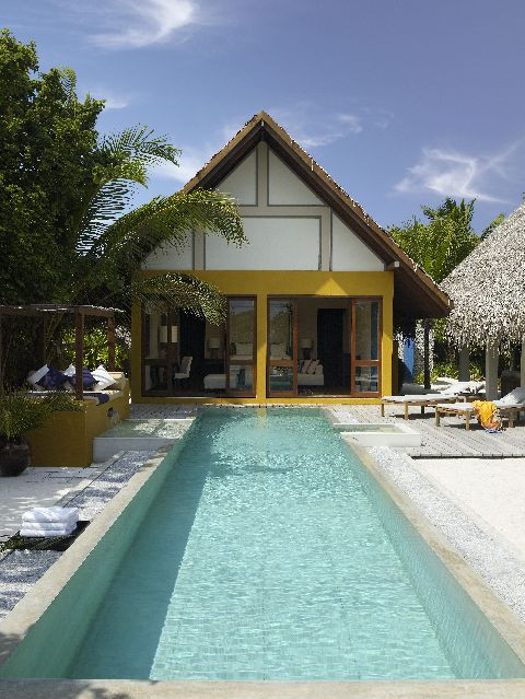 Das Resort bietet Gästen die Auswahl zwischen verschiedenen Unterkunftsmöglichkeiten: Auf dem Land gibt es 29 „Beach Bungalows mit Pool“ (innen 75 Quadratmeter groß), 30 „Beach Villas mit Pool“ (innen 137 Quadratmeter groß) und eine „Royal Beach Villa“ (innen 310 Quadratmeter groß). Die „Beach Bungalows“ befinden sich auf der Nordseite der Insel, neben einem Swimming Pool gibt es auch einen großzügigen Außenbereich. Die „Beach Villas“ liegen im Süden der Insel, das „Highlight“ der 260 Quadratmeter großen „Outdoor-Area“ stellt der 12 Meter lange Pool dar. Die „Royal Beach Villa“ besteht unter anderem aus zwei Schlafzimmern, Innen- und Außenbadezimmer, Wohnzimmer und ein eigenes Gästezimmer. Im Freien gibt es einen 20 Meter langen Pool, einen Essbereich über dem Wasser und ein 100 Quadratmeter großes Sonnendeck.