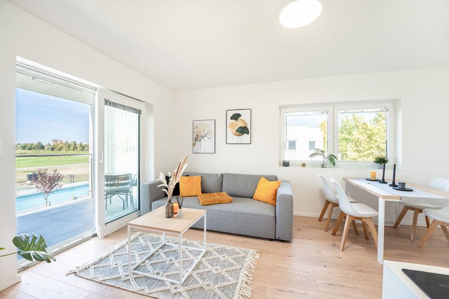Auch im Bereich Wohnen setzt das Ferienresort Pannonia auf klare Akzente. In den letzten Jahren entstanden neue Apartments, Bungalows und Villen, die sich durch zeitgemäße Architektur in hochwertiger Ziegel- Massivbauweise, großzügige Grundrisse und hochwertige Materialien auszeichnen. Besonderes Augenmerk liegt auf einem seit heuer neuen, exklusiven Einrichtungspaket, welches modernen Lifestyle mit Komfort verbindet. Die Wohneinheiten sind vielseitig nutzbar und eignen sich sowohl für die touristische Nutzung sowie auch als nachhaltige Kapitalanlage. Entsprechend breit ist der Kreis der angesprochenen Zielgruppen – von Urlaubsgästen über Zweitwohnsitznutzer bis hin zu Investoren.