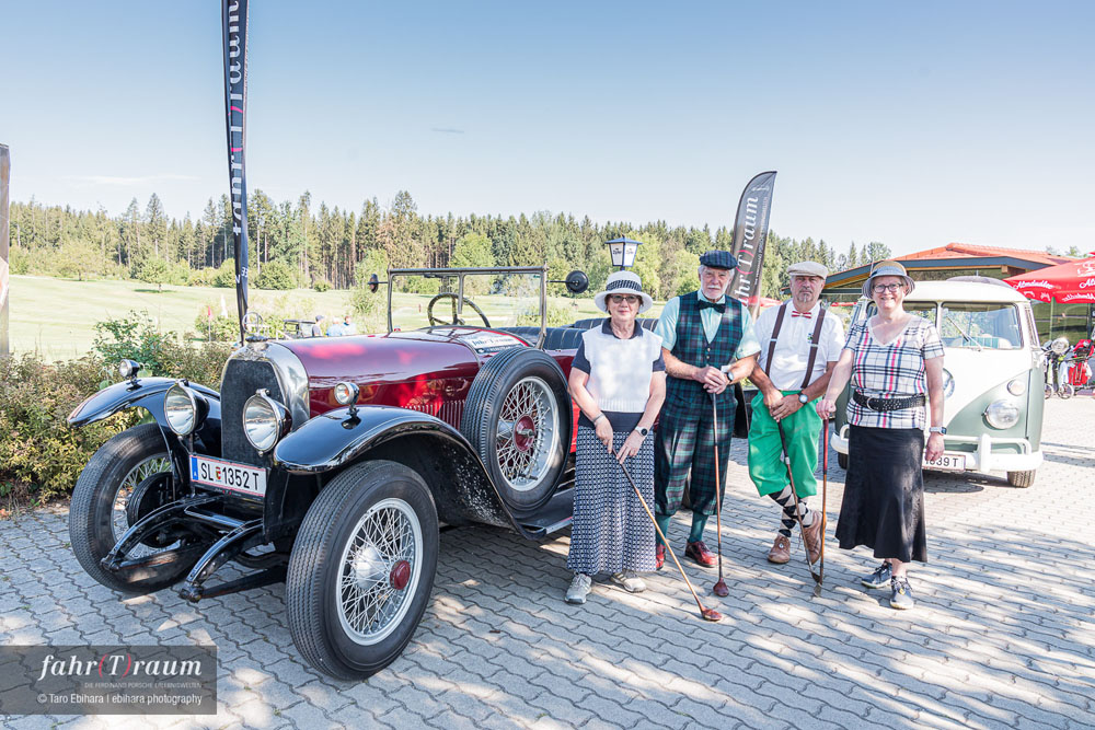 35 „alte Autos“ und schon gar nicht Oldtimer, erklärte mir Jakob Iglhauser, Geschäftsführer von fahr(T)raum, von der Kutsche bis zum Käfer bilden das Herzstück des Museums. Ausstellungsgründer der Erlebniswelten ist der Enkel von Ferdinand Porsche, Ernst Piech, der die Automobil-Sammlung als eine Hommage an seinen Großvater errichtet hat. Alle Autos sind angemeldet und fahrtüchtig. Den Rahmen der Dauerausstellung bildet die kühle, zweckmäßige Architektur einer ehemaligen Schuhfabrik. Eine Erweiterung der 3.000 m2 großen Ausstellungsfläche für die Präsentation von alten Flugzeugen ist im Bau. Standesgemäß holte mich mein Chauffeur auch wieder in einem „alten Auto“ ab und brachte mich zum Golfplatz. Das Turnier war ein Auftrieb von Porsche- und Golf-Enthusiasten. Bei schönstem Wetter spielten sie hervorragende Ergebnisse ein und tauschten dann so manche Anekdoten aus der Porsche-Geschichte aus. Ein besonderes Highlight war eine eigene Hickory-Wertung für Gäste, die im historischen Golf-Outfit und Equipment auf der Tour waren. Die Sieger:innen freuten sich über Porsche design-Accessoires – eine fröhliche Feier und noch eine Nacht im traum-haften Schlosshotel Iglhauser beendeten den Porsche-Golf-Trophy-Tag.