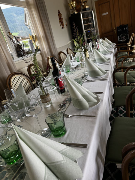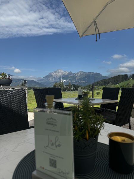 Es könnte keinen schöneren Ort für den 18-Loch-Meisterschaftsplatz des Golfclubs Urslautal geben - auf einem Hochplateau zwischen Maria Alm und Saalfelden im SalzburgerLand – und immer im Blick das Bergmassiv Steinernes Meer. „Diese einmalige Aussicht hat uns in einer lustigen Runde auch bewogen, das Clubrestaurant ´Mehrblick` zu nennen“, erzählt Sabrina in unserem Gespräch. Es gebe zwar das Steinerne MEER zu sehen, aber viel spektakulärer sei das MEHR im Rundumblick! Und damit gebe es auch keinen besseren Platz für das attraktive Clubhaus mit seiner wunderschönen Sonnenterrasse und dem Restaurant – insge samt 80 Plätze - direkt an Loch 18, in dem Sabrina und Marco seit Februar 2024 die charmanten und sympathischen Gastgeber sind. Dass Sabrina und Marco die Entscheidung, nämlich das Restaurant am Golfplatz zu übernehmen, leichtfiel, ist also nur zu verständlich. Die beiden Deutschen aus der Nähe von Kassel lebten bereits vor der Übernahme im salzburgerischen Pinzgau: Sabrina arbeitete als Restaurantleiterin und Marco, der noch ein Unternehmen in Deutschland führt, spielte bereits Golf im GC Urslautal. Sie trafen sich 2016 wieder, heirateten und leben jetzt ihren gemeinsamen „Traum“, wie sie mir beide in unserem Gespräch bestätigten.