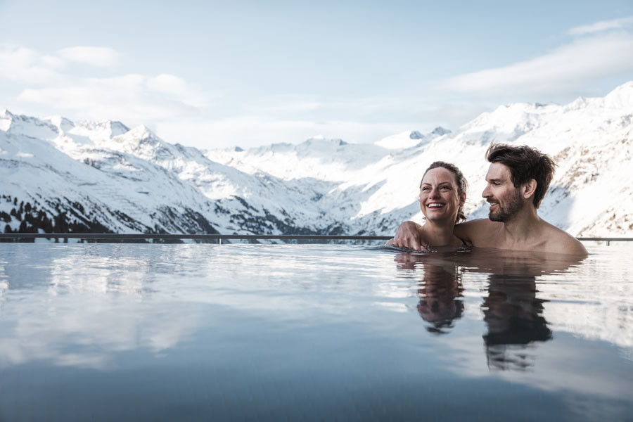 Das zentrale Element des Hotels ist der 2.000 m² große Wellnessbereich. Auf zwei Stockwerken können Sie sich rundum verwöhnen lassen und Ruhe genießen. Genießen Sie eine wohltuende Massage, entspannen Sie in den Saunen oder lassen Sie in einem der beiden Außen-Whirlpools die Ötztaler Alpen als perfekte Kulisse auf sich wirken. Ausreichend Ruheräume laden zusätzlich dazu ein, in völliger Stille zu entspannen und die Gedanken schweifen zu lassen.