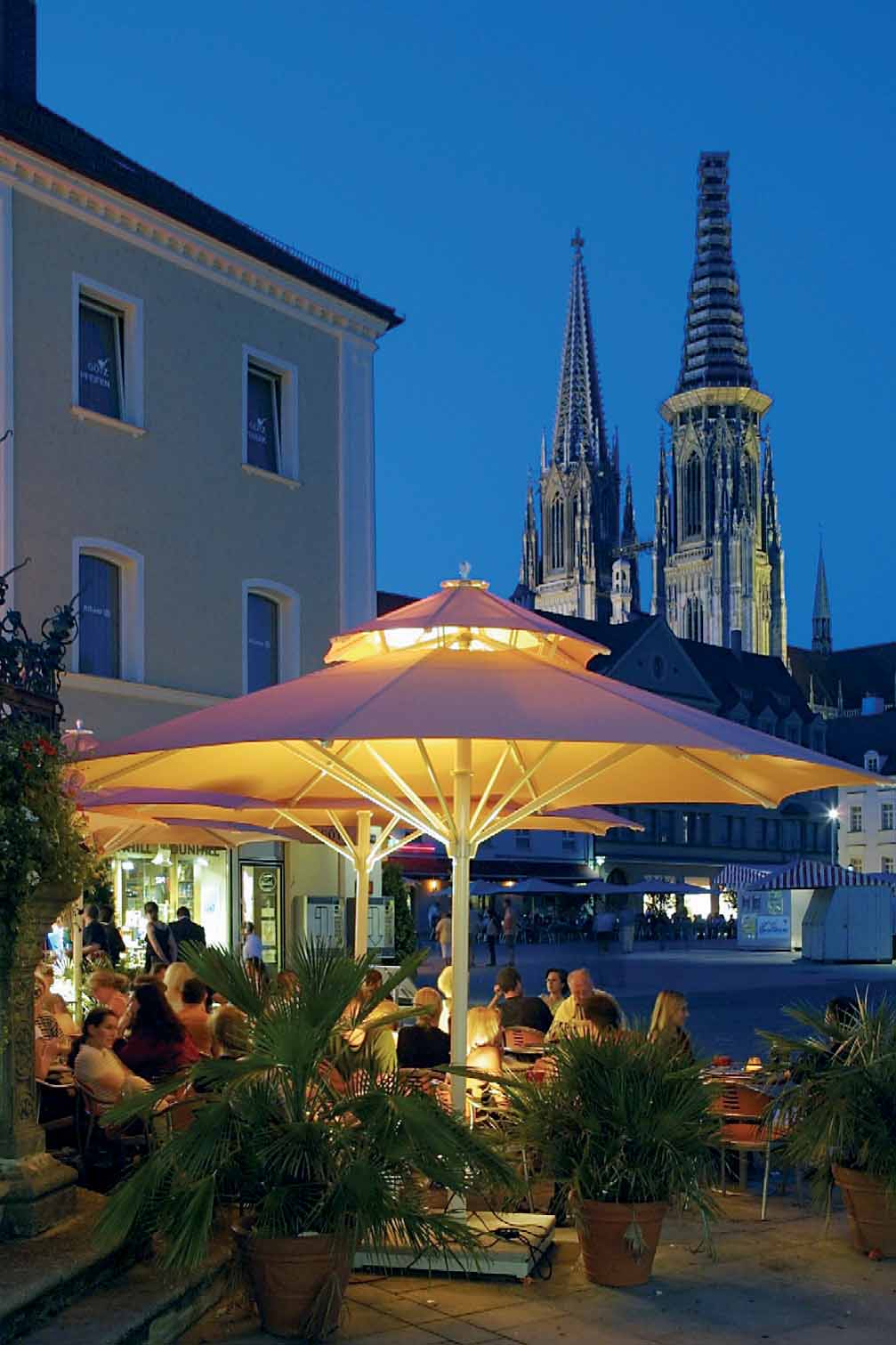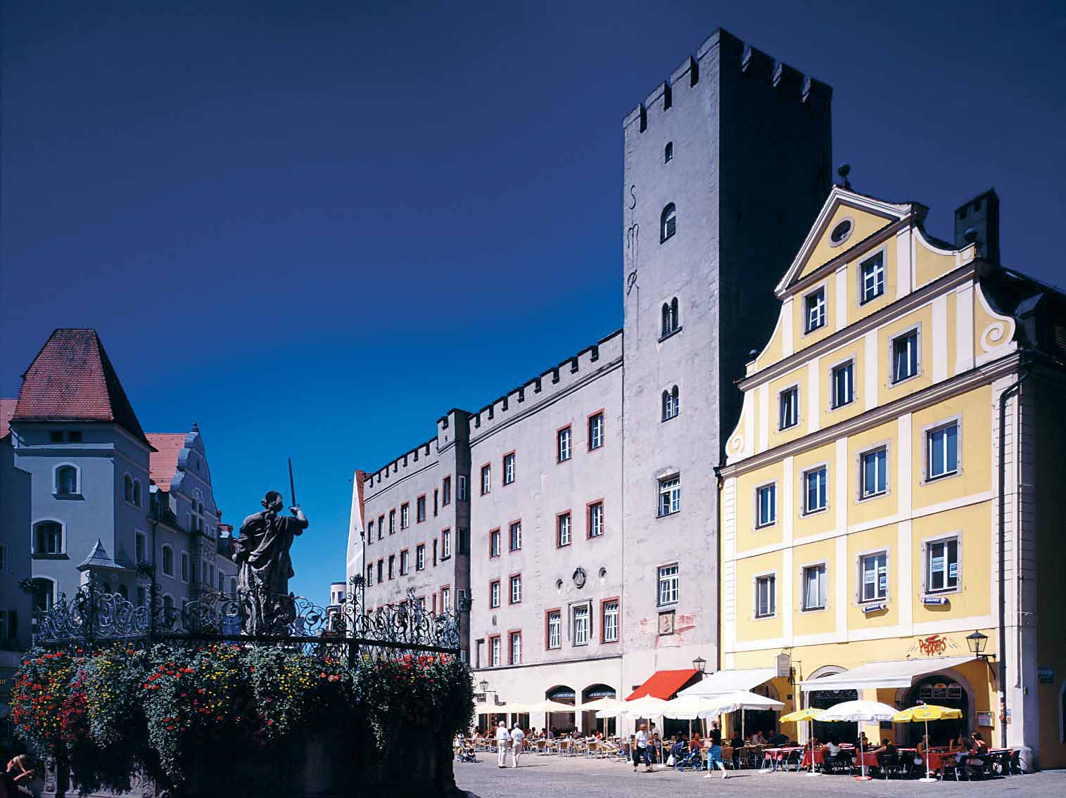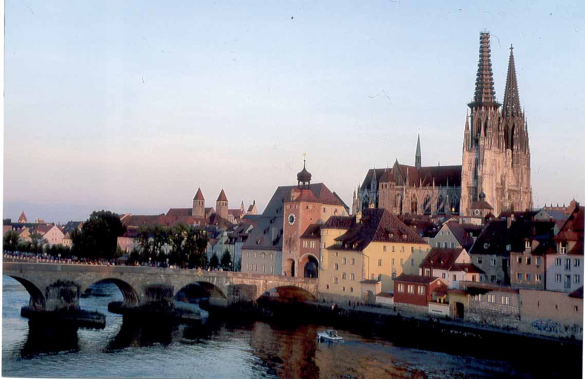 Sie liegt ein wenig abseits der gängigen Verkehrsachsen, zugegeben. Doch eigentlich ist die Stadt, die bis in die achtziger Jahre noch „am Ende der Welt“ zu finden war, heute in der Mitte Europas. Sie nennt sich Regensburg, wobei sie von manchen „die nördlichste Stadt Italiens“, von anderen „mittelalterliches Wunder Deutschlands“ genannt wird. Beide haben Recht. Nicht nur die Bauweise hüllt die Besucher in italienisches Flair, auch die Lebensweise, der die Regensburger in ihrer Stadt mit der höchsten Kneipendichte Deutschlands frönen, erinnert an das Leben unter südlicher Sonne. Und wenn sich Regensburg – von Kriegseinflüssen nahezu völlig verschont – dem Besucher heute als die einzige noch weitgehend erhaltene Großstadt aus dem Mittelalter präsentiert, ist sie alles andere als historisch verschlafen. Mit rund 150.000 Einwohnern ist die 2000 Jahre alte Metropole am nördlichsten Punkt der Donau heute die viertgrößte Stadt Bayerns. Das Mittelalter hat als Epoche der höchsten wirtschaftlichen Blüte, die auf weltweiten Handelsbeziehungen beruhte, das Gesicht der Stadt geprägt. Damals entstand die 330m lange Steinerne Brücke (1135 – 1146), nahezu 800 Jahre lang der einzige Übergang über die Donau im weiteren Umkreis.
