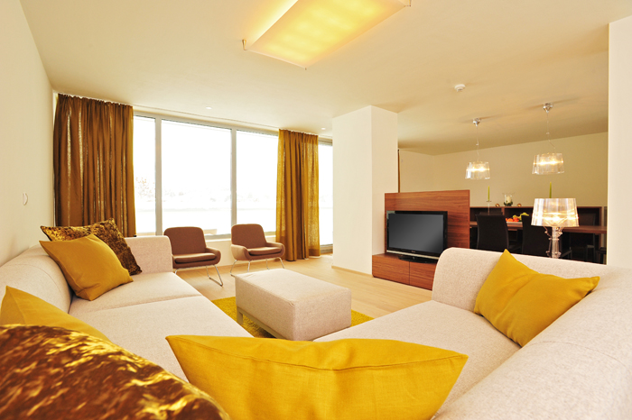Die Tauernresidence bietet Appartements mit ein bis drei Schlafzimmern. Das Resort wartet auch mit vielen Annehmlichkeiten auf und die sonstige technische Ausstattung lässt keine Wünsche offen. Hier verschmilzt High Tech mit modernstem Interieur Design zu einer hellen modernen Atmosphäre mit einzigartigem Raumgefühl. Die Abende mit Blick auf den Golfplatz werden Ihnen in ewiger Erinnerung bleiben. Die Appartements sind perfekt für Familien oder eine Gruppe von Freunden, die modernes Design und Komfort gepaart mit viel Komfort schätzen