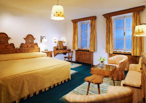 Höchst individuell möbliert zeigen sich die gemütlichen Gästezimmer: Jahrhundertealte Bauernmöbel spiegeln den gehobenen Salzburger Landhausstil wider. Die berühmte Hirschen-Bar ist nicht nur zu den Festspielen beliebter Treffpunkt der Gesellschaft, während das exquisit bodenständige Restaurant Goldener Hirsch und das gemütliche „s‘Herzl“ zur kulinarischen Einkehr laden.