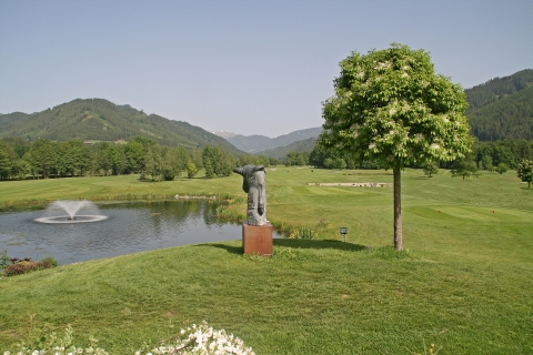 18-Loch Anlage des Golfclub Murtal. Kristallklare Grundwasserteiche und Gebirgsbäche schlängeln sich idyllisch zwischen die Fairways und machen das Golfen auf dem vollkommen ebenen Rasen zu einem wahren Genuss.