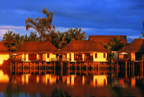 Der Pool des Hotels scheint mit dem Ozean zu verschmelzen, die strohgedeckten Gebäude passen sich ihrer Umgebung wie selbstverständlich an, die asiatisch inspirierten Interieurs und die Allgegenwärtigkeit des Elements Wasser verleihen Le Prince Maurice ein vollkommen entspanntes Ambiente.