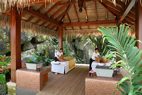 Ganz dem Motto entsprechend WHATEVER, WHEREVER WHENEVER, entscheidet der Gast was, wann und wo er zu speisen wünscht. Das all-inclusive Konzept beinhaltet ein großzügiges Angebot. Getränke, Weine und eine Speisekarte mit einer Auswahl der besten Gerichte rund um die Welt in Topqualität, verursachen keine Extrakosten. Das überdachte Restaurant im Pool und Strandbereich, in landestypisch, schlichter, offener Bauweise und anschließendem Barbereich, taucht abends das Licht fantastischer Feuerfackeln, in eine unvergessliche Szenerie. Eine wahrhaft bescheidene Untertreibung ist die Bezeichnung Spa. Dem Besucher wird eine Tropengarten Openair Wellnessoase eröffnet, für eine himmlische Zeit.