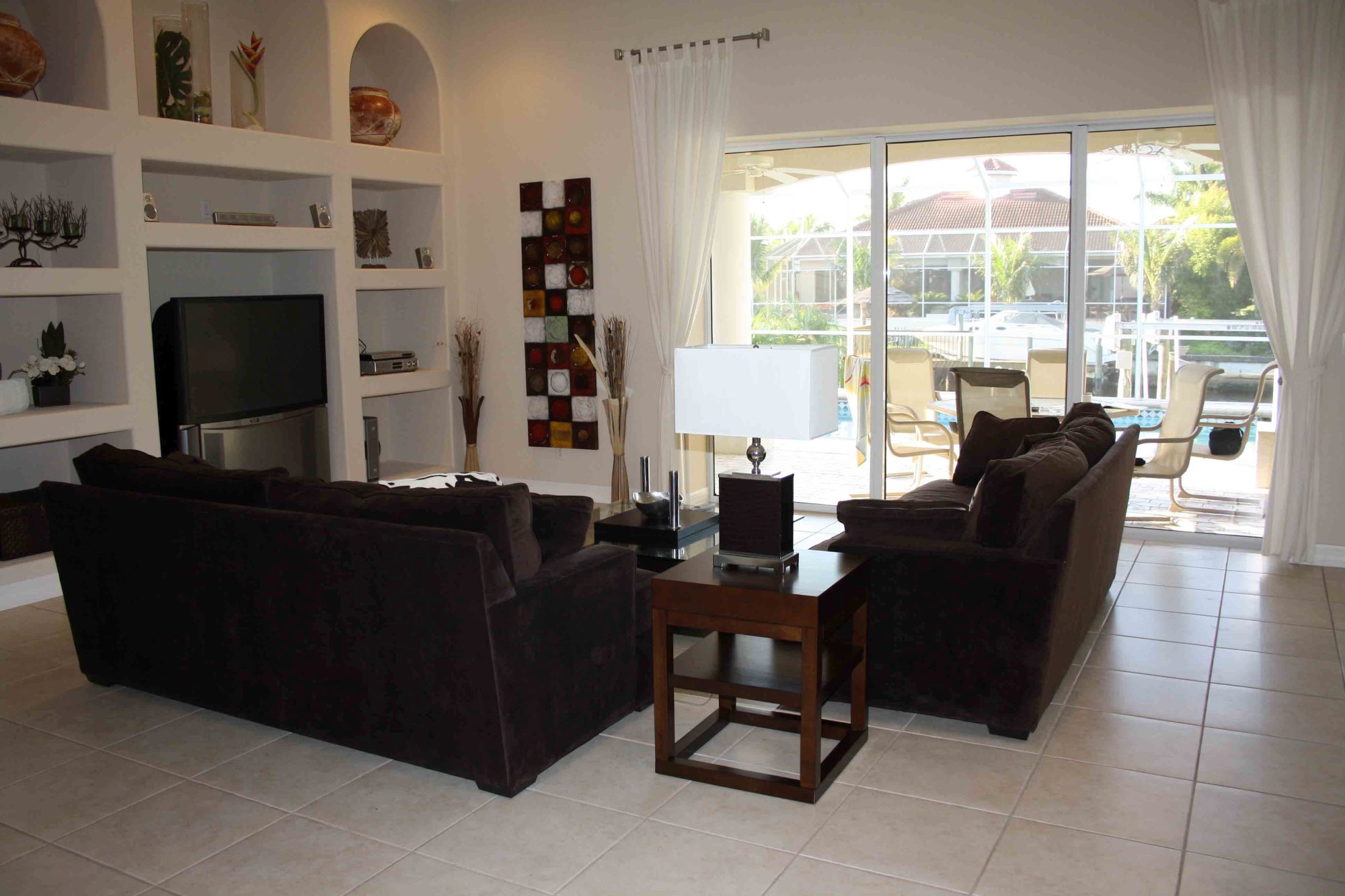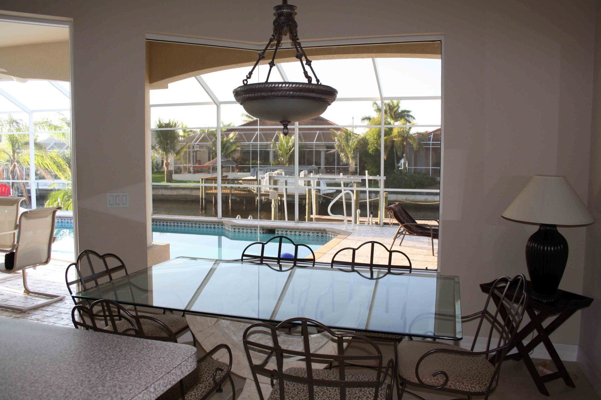 Die 2004 erbaute Villa Royal in Cape Coral bietet ausreichend Platz für sechs Personen, da sie über drei getrennte Schlafzimmer, zwei Badezimmer, ein geräumiges Wohnzimmer mit offener Küche, einen großzügigen Pool (mit dem obligaten Moskitoschutz!) und einen Bootssteg (mit zumietbarem Motorboot) verfügt. Die Küche ist komplett mit Geschirr und allen Küchengeräten eingerichtet, im Poolbereich steht zudem ein Gasgriller bereit, um zünftige BBQs zu veranstalten. Selbstverständlich sind auch mehrere Fernseher mit unzähligen Kanälen (inkl. Golfchannel!) und eine Hifi-Anlage vorhanden.