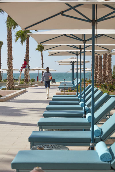 Der Strand des Mandarin Oriental Jumeirah bietet ein fantastisches Ambiente. Elegante Strandliegen, perfektes Service und fünf private Cabanas stehen den Gästen zur Verfügung.