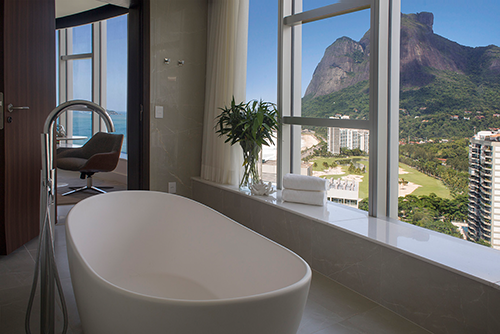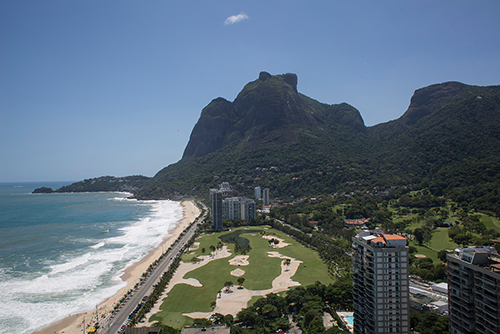 Das Hotel, welches von Oscar Niemeyer, dem berühmtesten Architekten Brasiliens, 1972 erbaut wurde, war über 20 Jahre geschlossen. Im Dezember 2016 wurde das komplett renovierte Luxushotel endlich wiedereröffnet und erstrahlt im neuen Glanz. Das Gran Meliá Nacional ist nicht nur durch seine imposante Architektur und Höhe, sondern auch wegen der Skulpturen von Alfredo Ceschiatti, dem Wandbild con Carybé und der Gartengestaltung von Burle Marx, bekannt. Es liegt direkt am Sao Conrado Strand, auf halben Weg vom Zentrum Rio de Janeiro und dem Stadtteil Barra de Ticuja. Spezielle Golfpakete werden mit dem Gavea GC, nur 5 Minuten vom Hotel entfernt, angeboten. Auch der Itanhangá GC (15 Min.) und der Olympia Platz (30 Min.) liegen in guter Reichweite. Zum Flughafen Rio de Janeiro sind es rund 45 Minuten.