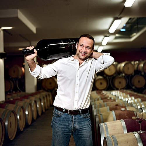 Bezugnehmend auf das aktuelle Werbesujet Kirnbauers mit dem entzückenden Damenrücken und der kleinen leeren Flasche daneben, meint Markus Kirnbauer, „Bedingt durch den kargen 2014er Jahrgang mit über 40% weniger Ernteertrag ist unser Phantom schon fast wieder „ausgetrunken“ und das bei konstant steigender Nachfrage weltweit. Die Symbolik im Bildaufbau zeigt, dass eines der beliebtesten Aushängeschilder unseres Hauses leider bereits bald vergriffen sein wird“. „Das Phantom verkörpert sozusagen das Unbekannte und Geheimnisvolle. Dies spiegelt sich auch in der schmeichelhaften Eleganz der unterschiedlichen Rebsorten, die wir für die Cuvée verwenden. Jede Sorte entwickelt sich per se anders und das macht den Wein so anspruchsvoll. Wir können sogar von einem „everybody’s darling“ sprechen, denn für jede persönliche Vorliebe an Sorte schmiegt sich ein wohlwollender Geschmack an den Gaumen. Unser „Das Phantom“ ist nicht nur eine verblüffende Erscheinung aus dem Untergrund, sondern ein Wein mit eigenständiger Persönlichkeit, die ihn so wertvoll macht“, führt Kirnbauer weiter aus und ergänzt: „Unsere Trauben sind, nachdem sie von Hand gelesen und nach ihrer Ankunft sorgfältig aber behutsam selektiert werden, in einer Art Schwebezustand. Die Reben – speziell für den GOLD Reserve – sind über 20 Jahre alt und dementsprechend wertvoll für uns im Ausbau. Neben ihrer natürlichen Bestimmung – der Weinwerdung – erledigt dann die Schwerkraft für uns die schonendste Verbindung zwischen Presse und Holzfass. Wir führen schon seit langer Zeit einen nachhaltig zertifizierten Betrieb und machen uns auch so weit wie möglich alle naturbezogenen Energien um uns zunutze. Zum Beispiel entnehmen wir unserem eigenen „Girmer“ Eichenwald Holz für die Barriques, mit dem besonders unser Zweigelt im Ausbau sehr schön im Einklang steht. Wir beschallen unseren Fasskeller u.a. mit Musik des hier geborenen Komponisten Franz Liszt sowie des pannonischen Geigenvirtuosen Toni Stricker. Dadurch wird die Traube nicht nur vom Holz geküsst: es entsteht eine Gesamtharmonie, die mehr ist als die Summe ihrer einzelnen Teile“.