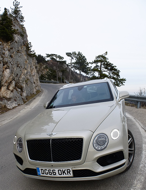 Ja und wie fährt sich der Bentley so im Alltag. Nun auf den ersten Kilometern mit dem 5,1 m langen und 2,2 m breiten Super SUV fühlt man sich wie in einem ausgeborgten Klein-LKW eines unmöglichen oder möglichen Möbelhauses, abgesehen vom Interieur natürlich. Doch dank Luftfederung, Adaptivdämpfern, Wankstabilisierung und vielen anderen elektronischen Helferleins, düst man bald wie in einem sportlichen Kombi durch die Kurven und vergisst komplett auf die eigentlichen Dimensionen des Bentley. Das Interieur lässt, wie von Bentley gewöhnt, keine Wünsche offen. Feinstes Gestühl mit Massagefunktion auf Wunsch vier, fünf oder siebensitzig zu ordern, erwarten den Herren und Frauenfahrer sowie die edlen Gäste. Das Naim-Audiosystem ist vom feinsten und vor allem die kleineren Ladys und Lords werden vom Entertainment Center in der zweiten Reihe begeistert sein.