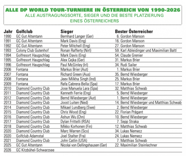 Der Austragungsort der Austrian Alpine Open 2026, der Golfplatz Kitzbühel-Schwarzsee Reith, erstrahlt bereits jetzt in neuem Glanz. Mit komplett erneuerten Teeboxen, elegant modellierten Bunker-Areas und einem state-of-the-art Shortgame-Bereich präsentiert sich die Anlage als Bühne, die internationalen Ansprüchen gerecht wird – und zugleich die unverwechselbare alpine Handschrift Kitzbühels trägt. Den hervorragenden Zustand des Platzes wurde bereits vom Head-Agronom der DP World Tour bestätigt. Passend dazu präsentiert sich das Golfland Tirol als Partner des Events von seiner besten Seite: Mehr als 20 Golfclubs laden zu einer Reise durch die schönsten Landschaften des Landes ein. Besonders erfreut über die DP World Tour, die wieder in Österreich angekommen ist, äußerte sich Gerhard Frühling, Präsident des Österreichischen Golfverbandes (ÖGV): „Die Austrian Alpine Open presented by SalzburgerLand haben gezeigt, welche Strahlkraft der internationale Golfsport in Österreich entfalten kann – sportlich, gesellschaftlich und wirtschaftlich.“ Umso größer sei nun die Vorfreude, wenn die Austrian Alpine Open in Kitzbühel ihre Fortsetzung finden. Tirol biete die perfekte Bühne, um die Erfolgsgeschichte dieser Veranstaltung weiterzuschreiben. Das Ziel des ÖGV sei klar „Wir wollen Österreich dauerhaft als Fixpunkt im Kalender der DP World Tour etablieren.“
